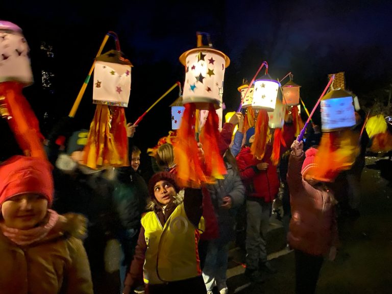 Am frühen Abend trafen sich die Jahrgangsstufen an unterschiedlichen Stellen im Kurpark, um von hier aus ihren Martinszug mit Musikkapellen und natürlich dem Heiligen Martin samt Pferd begehen zu können.