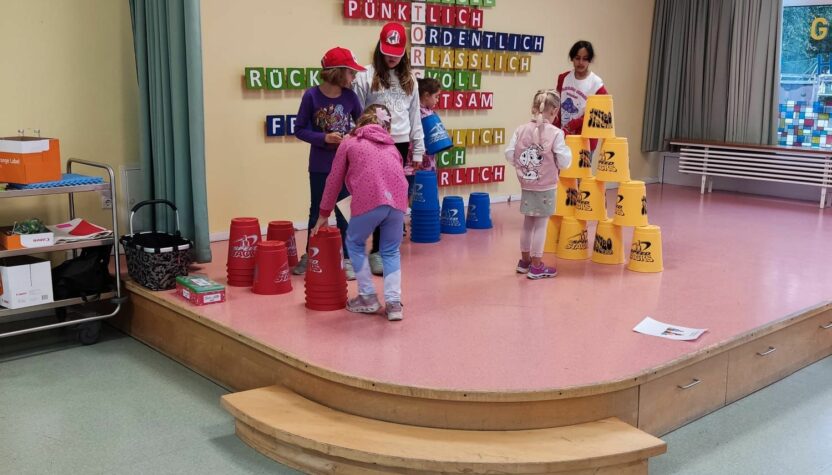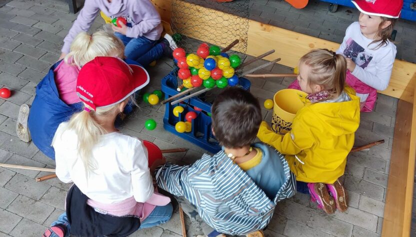 Unterstützt wurden die Vorschulkinder durch die Schüler und Schülerinnen der dritten Klassen, die nächstes Jahr die Paten der Vorschulkinder werden. Es konnte geworfen geangelt und gestapelt werden …