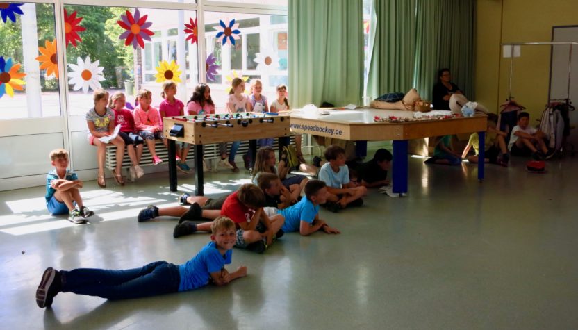 Noch einmal in der Pausenhalle auf dem Boden sitzen oder liegen dürfen und erleben, wie eine Geschichte erzählt wird, die schon seit vielen Jahren immer wieder für Vergnügen sorgt. Zwei Jungs, die ihren besonderen Spaß daran haben, anderen Menschen Streiche …