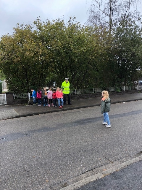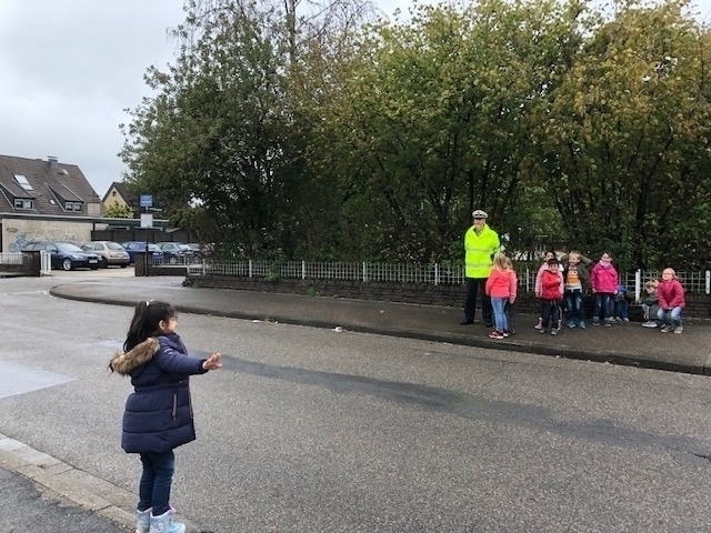 Heute war ein Polizist bei uns in der Schule, der mit uns zusammen geübt hat. Ich habe alles richtig gemacht!