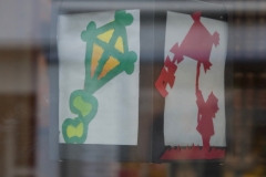 In vielen Schaufenstern sind Martinslaternen zu sehen, die Kinder der Viktor-Schule gebastelt haben.
