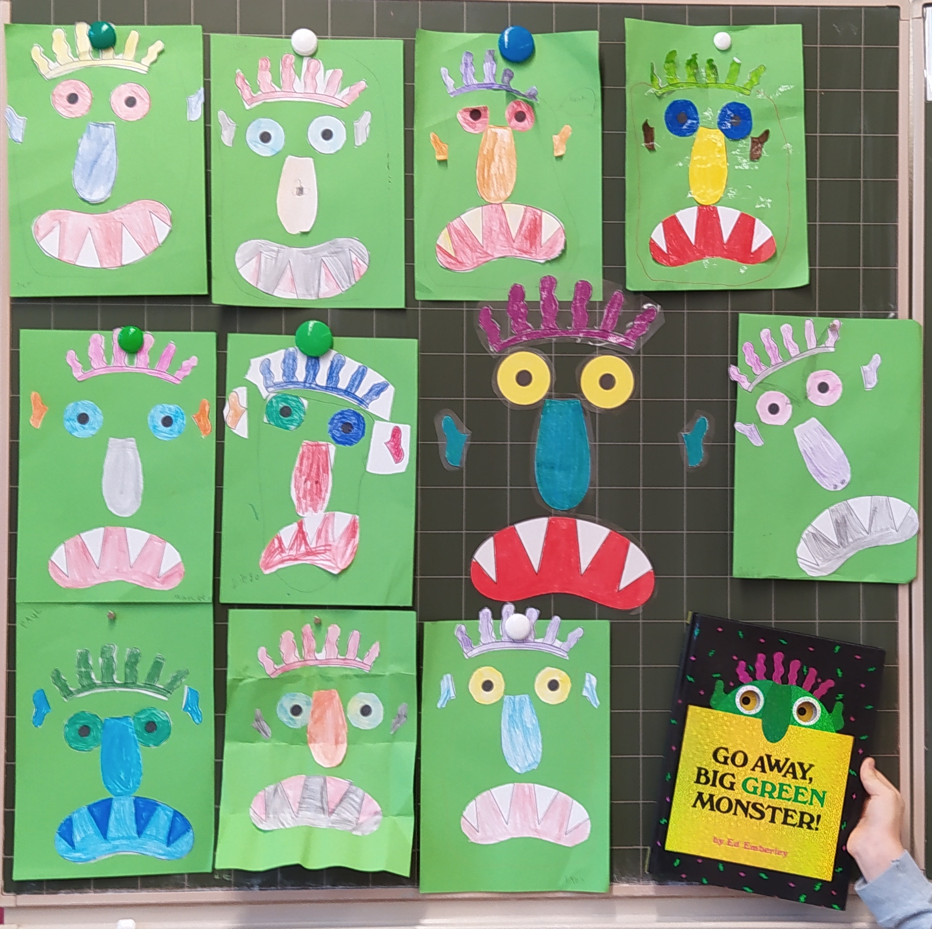 Die Klasse 2e hat im Englischunterricht das Bilderbuch „GO AWAY BIG GREEN MONSTER!“ von Ed Emberley gelesen.