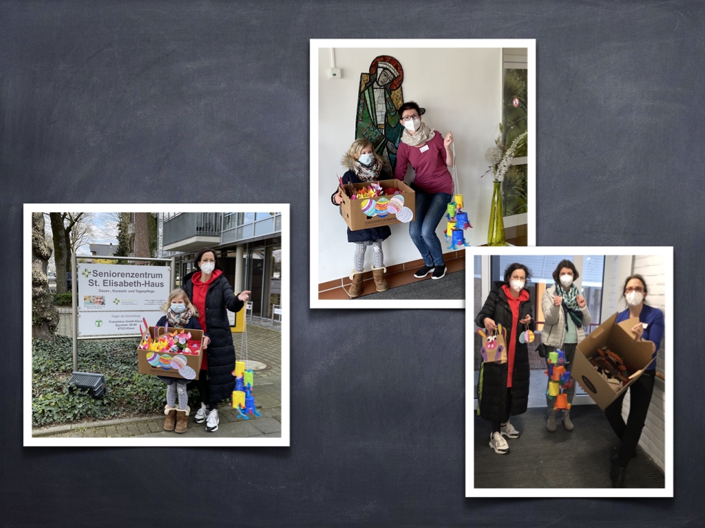 Mit Unterstützung des Lions Clubs aus Xanten konnten wir über das Projekt „Xantener für Xantener“ viele zusätzliche Bastelmaterialien besorgen, um allerlei schöne und kreative Dinge zur Dekoration zu erstellen. Die gebastelten Tulpen, Osterhasen, Hummeln, Schmetterlinge, Ostereier oder Vögelchen bereiten den Menschen in den Seniorenheimen und im Krankenhaus viel Freude.