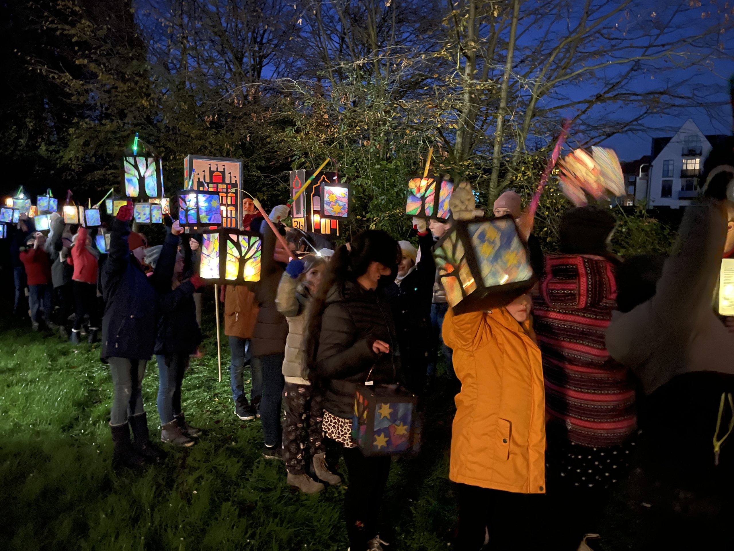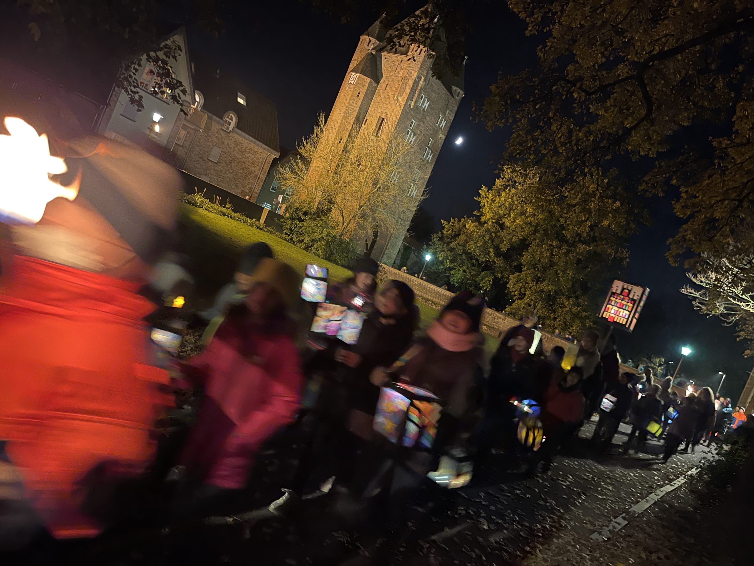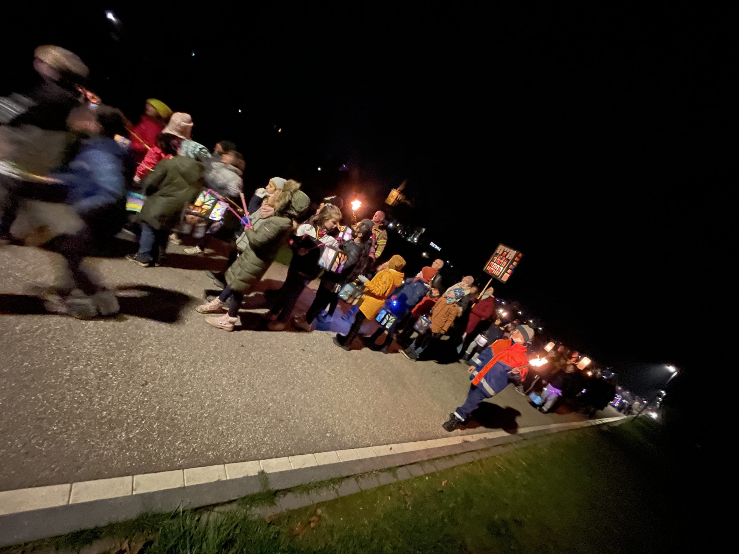 Am frühen Abend trafen sich die Jahrgangsstufen an unterschiedlichen Stellen im Kurpark, um von hier aus ihren Martinszug mit Musikkapellen und natürlich dem Heiligen Martin samt Pferd begehen zu können.