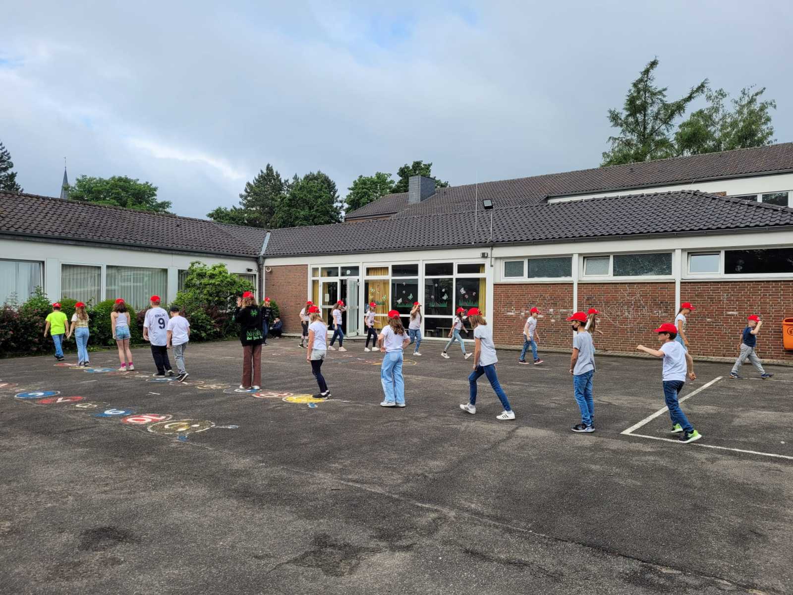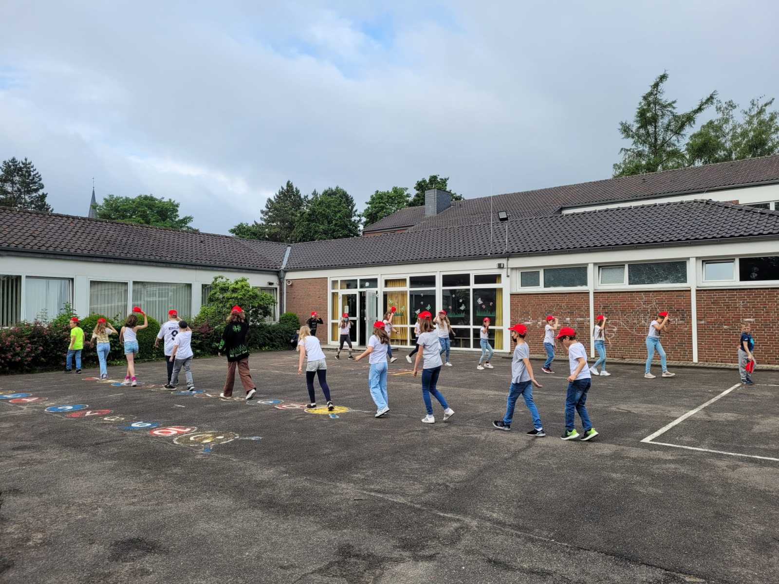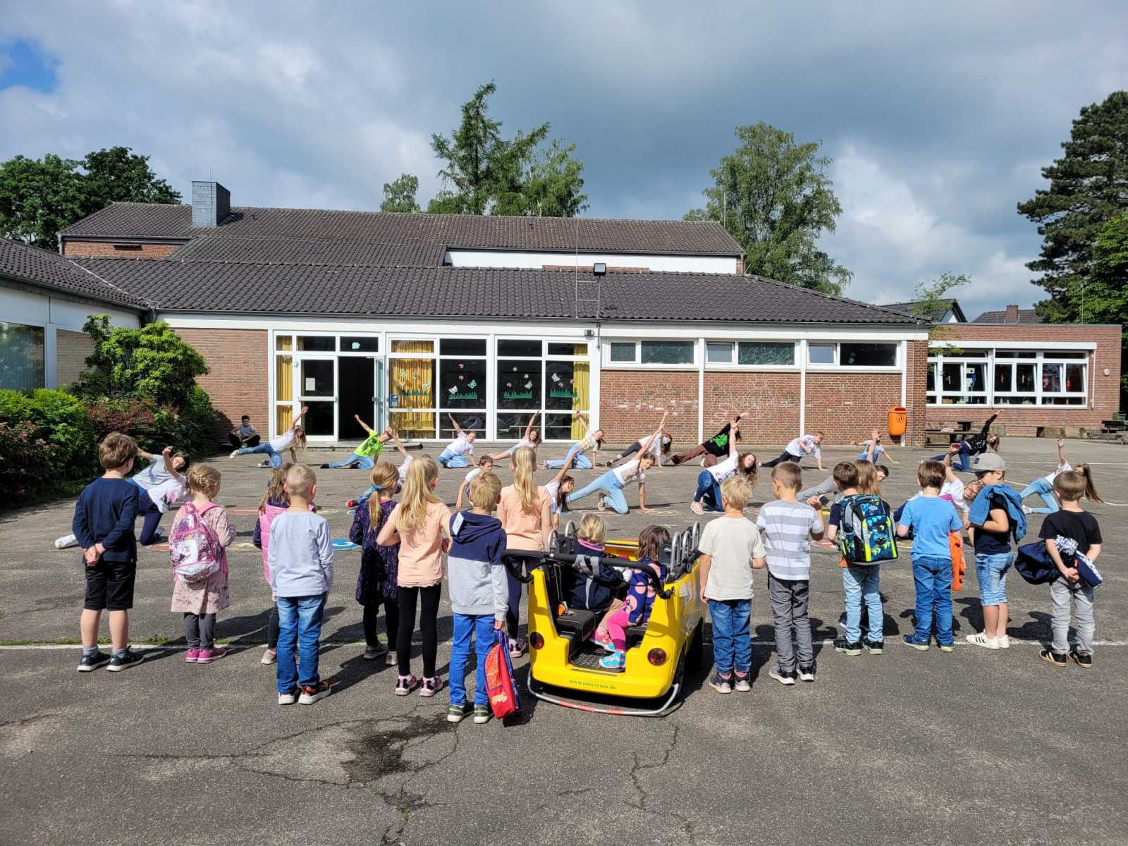 Begrüßt wurden die Kinder der Elefanten- und Felixklasse durch Tänzerinnen und Tänzer der Klasse 4e. Nach der großartigen Tanzeinlage lernten die baldigen Schulkinder auch schon ein bisschen den Schulalltag kennen und freuten sich, ihre neuen Mitschüler beim Rundgang durch die Schule besuchen zu können.