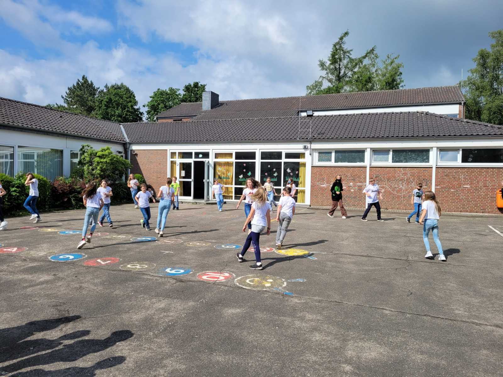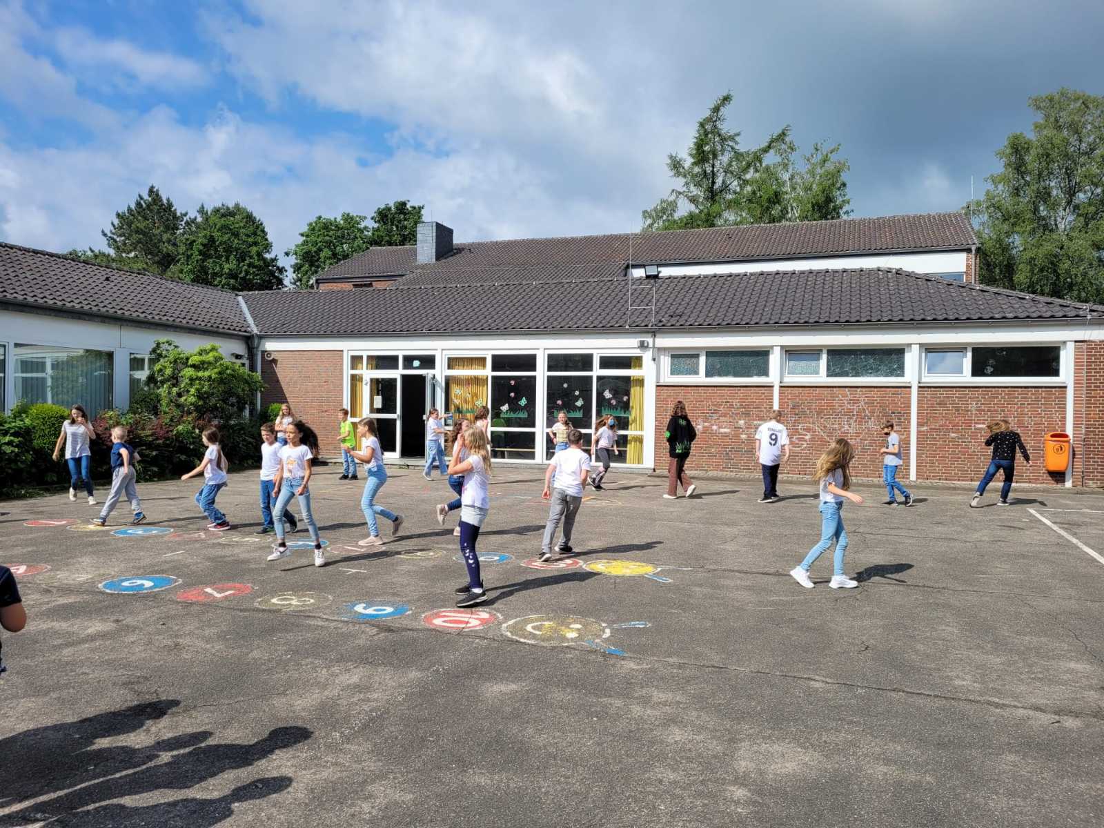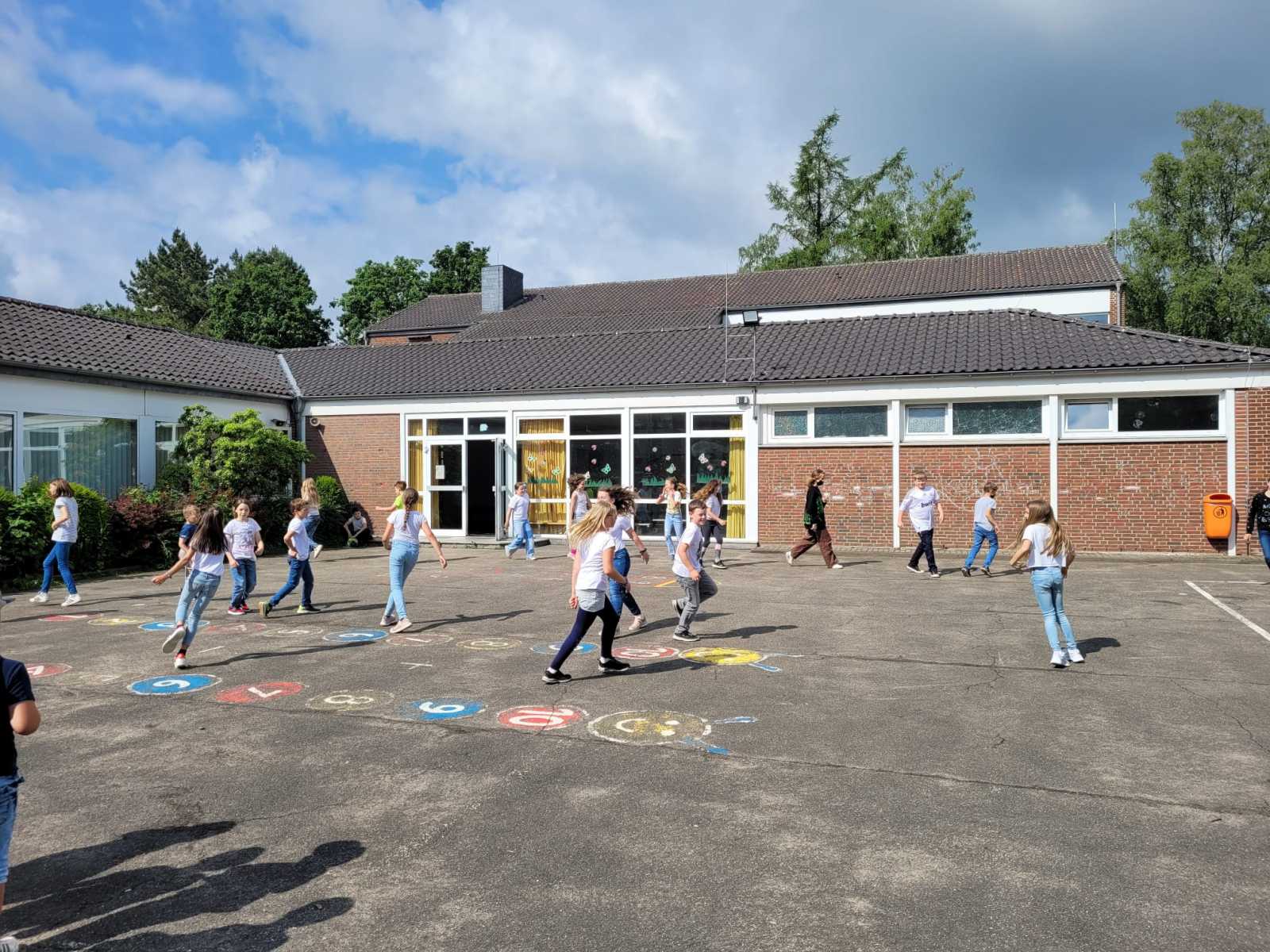 Begrüßt wurden die Kinder der Elefanten- und Felixklasse durch Tänzerinnen und Tänzer der Klasse 4e. Nach der großartigen Tanzeinlage lernten die baldigen Schulkinder auch schon ein bisschen den Schulalltag kennen und freuten sich, ihre neuen Mitschüler beim Rundgang durch die Schule besuchen zu können.