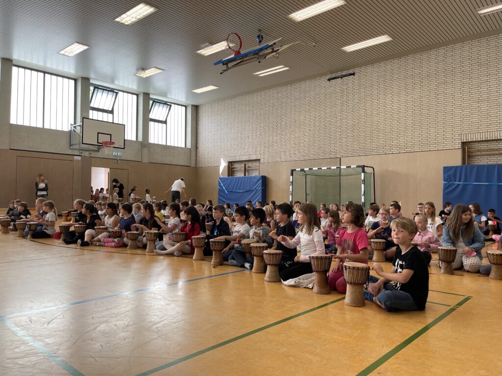Unser Trommelzauber hat den Kindern und Besuchern sehr gut gefallen. Die Kinder haben kräftig getrommelt, gesungen und getanzt und dabei viel Spaß gehabt.Nach der Aufführung am Nachmittag begann das Schulfest mit vielen attraktiven Spielständen. Alle Besucher konnten sich mit Würstchen, Eis und Getränken stärken. Endlich konnten wir wieder gemeinsam feiern!