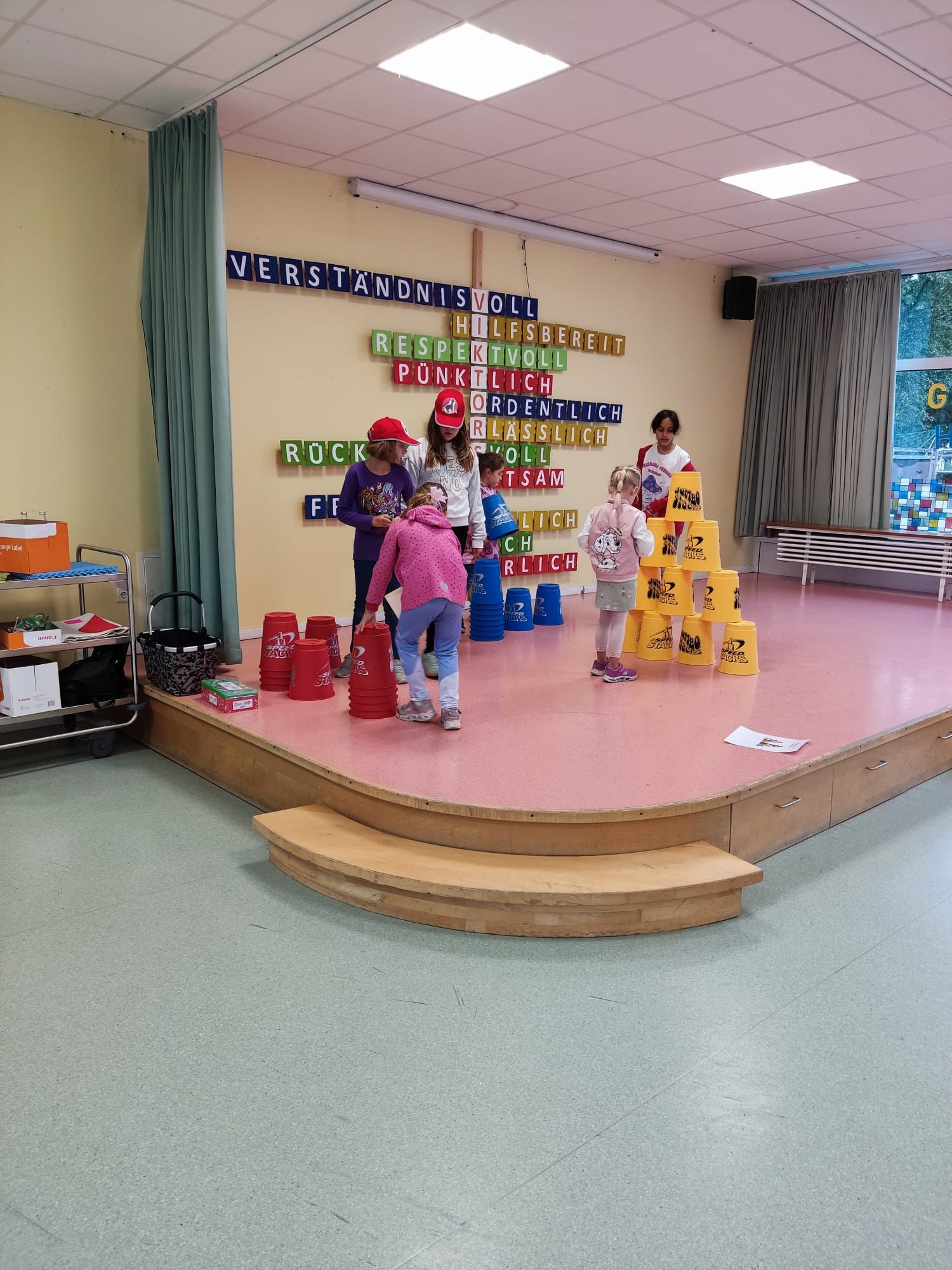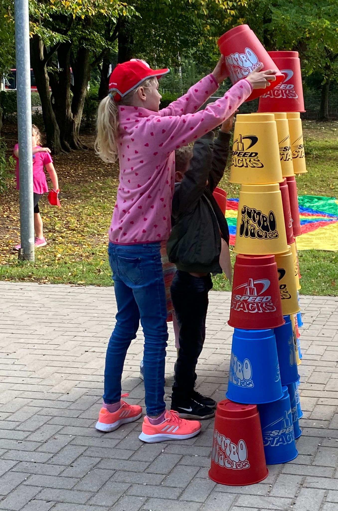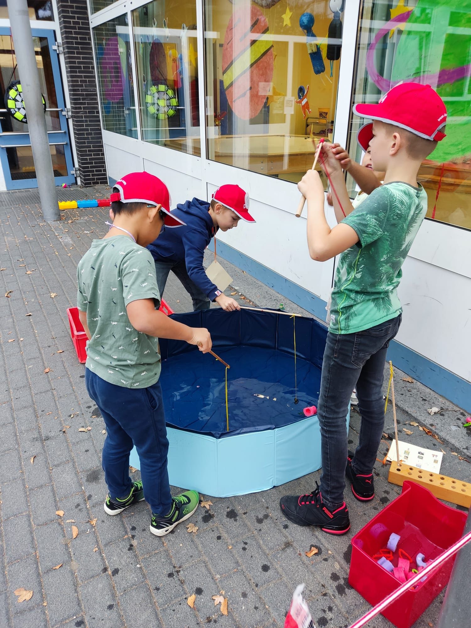 Unterstützt wurden die Vorschulkinder durch die Schüler und Schülerinnen der dritten Klassen, die nächstes Jahr die Paten der Vorschulkinder werden. Es konnte geworfen geangelt und gestapelt werden …