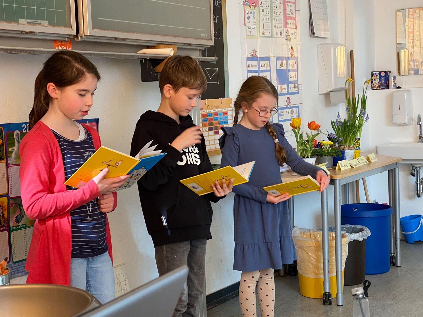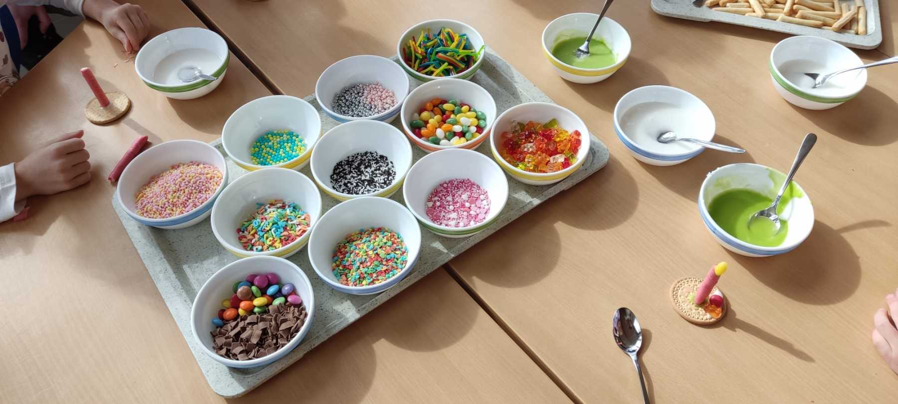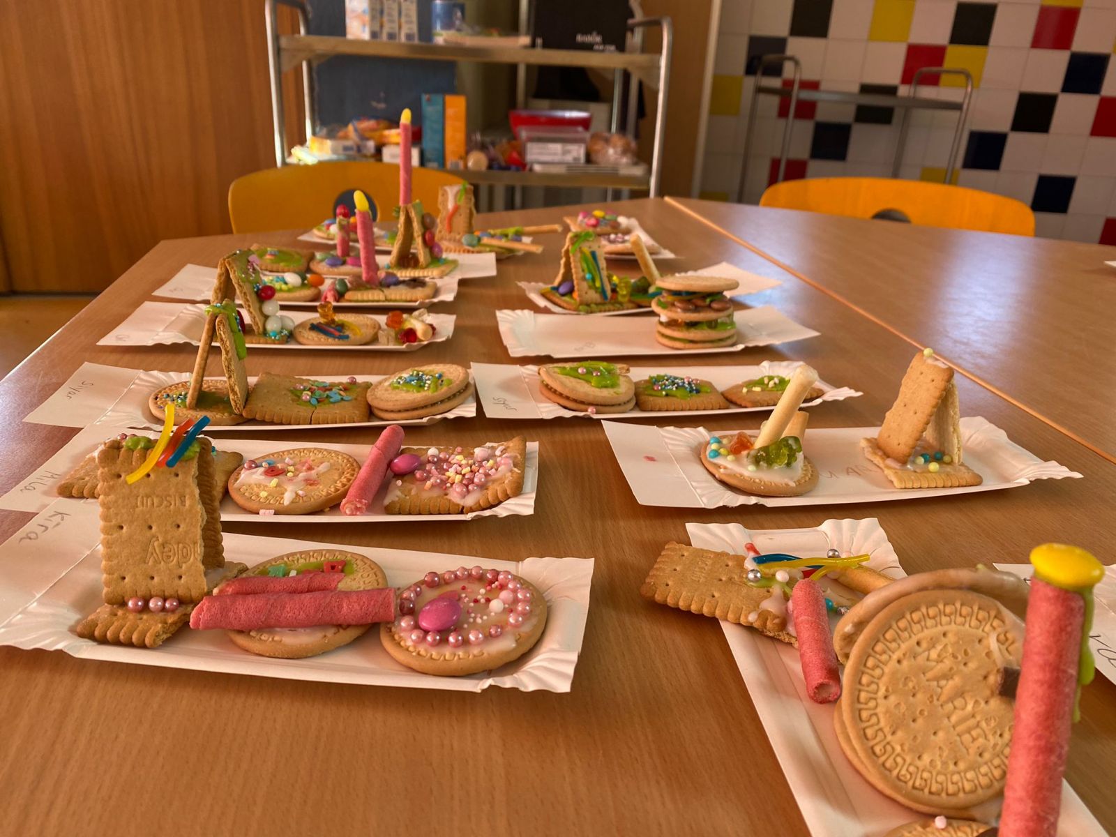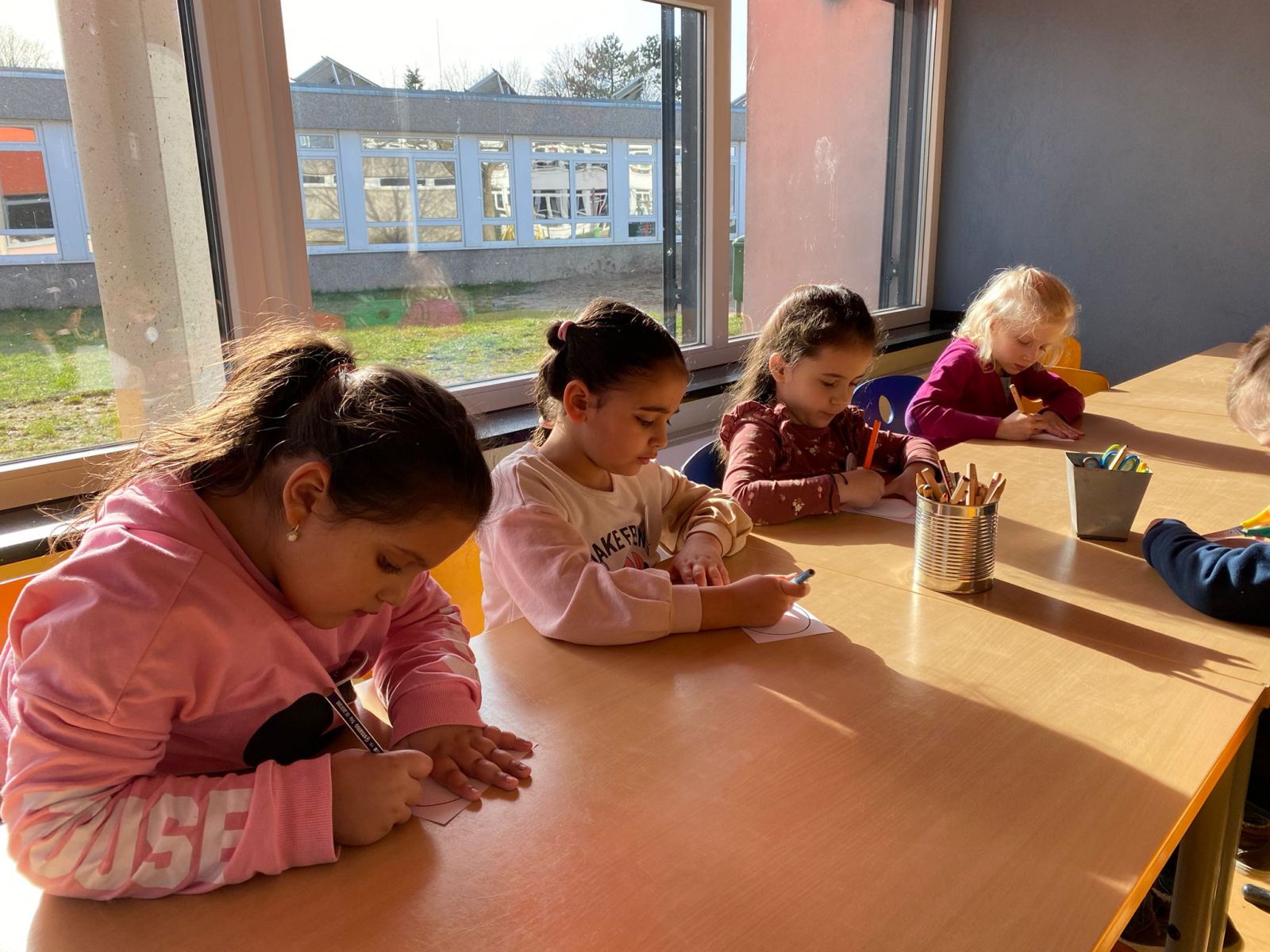 In der vergangenen Woche haben uns die Vorschulkinder aus den umliegenden Kitas besucht, um gemeinsam mit den zukünftigen Paten aus den dritten Klassen einen geselligen vorösterlichen Nachmittag zu verbringen. Es wurde aus dem Buch „Das schönste Ei der Welt“ vorgelesen, dazu gemalt und Kekse wurden mit viel Puderzucker lecker dekoriert. Hierbei entstanden Häuser, Kerzen, Elefanten, Keksburger und allerlei kreative Kunstwerke.