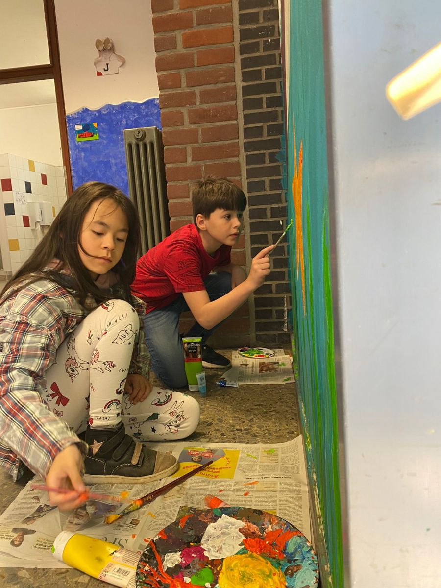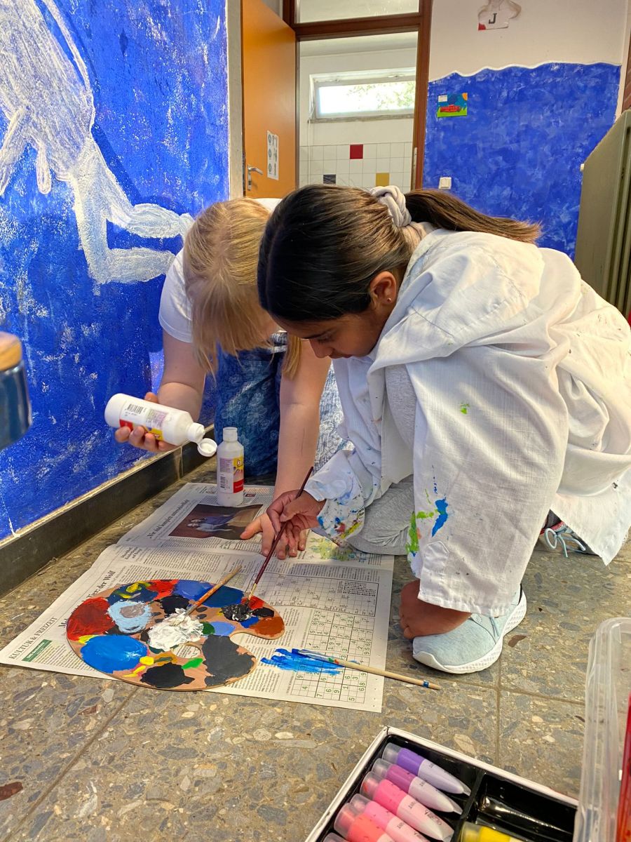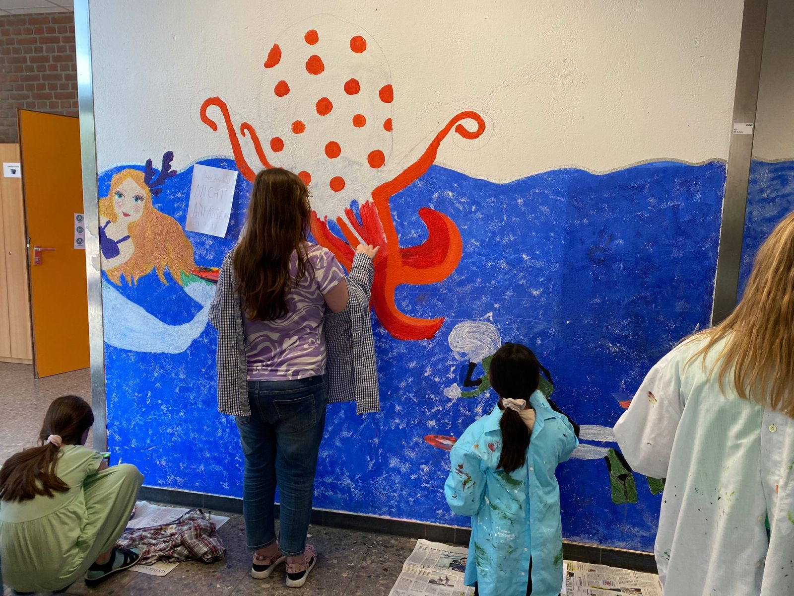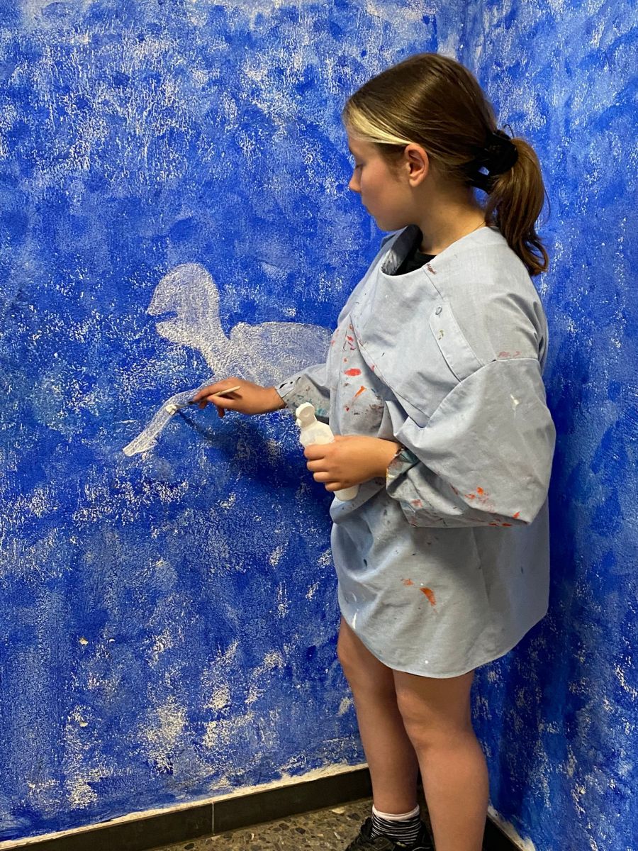 Die Kinder der Kunst-AG sind wieder in der Schule unterwegs, um das Schulleben bunter zu machen und die anderen auf Entdeckungstour zu schicken.