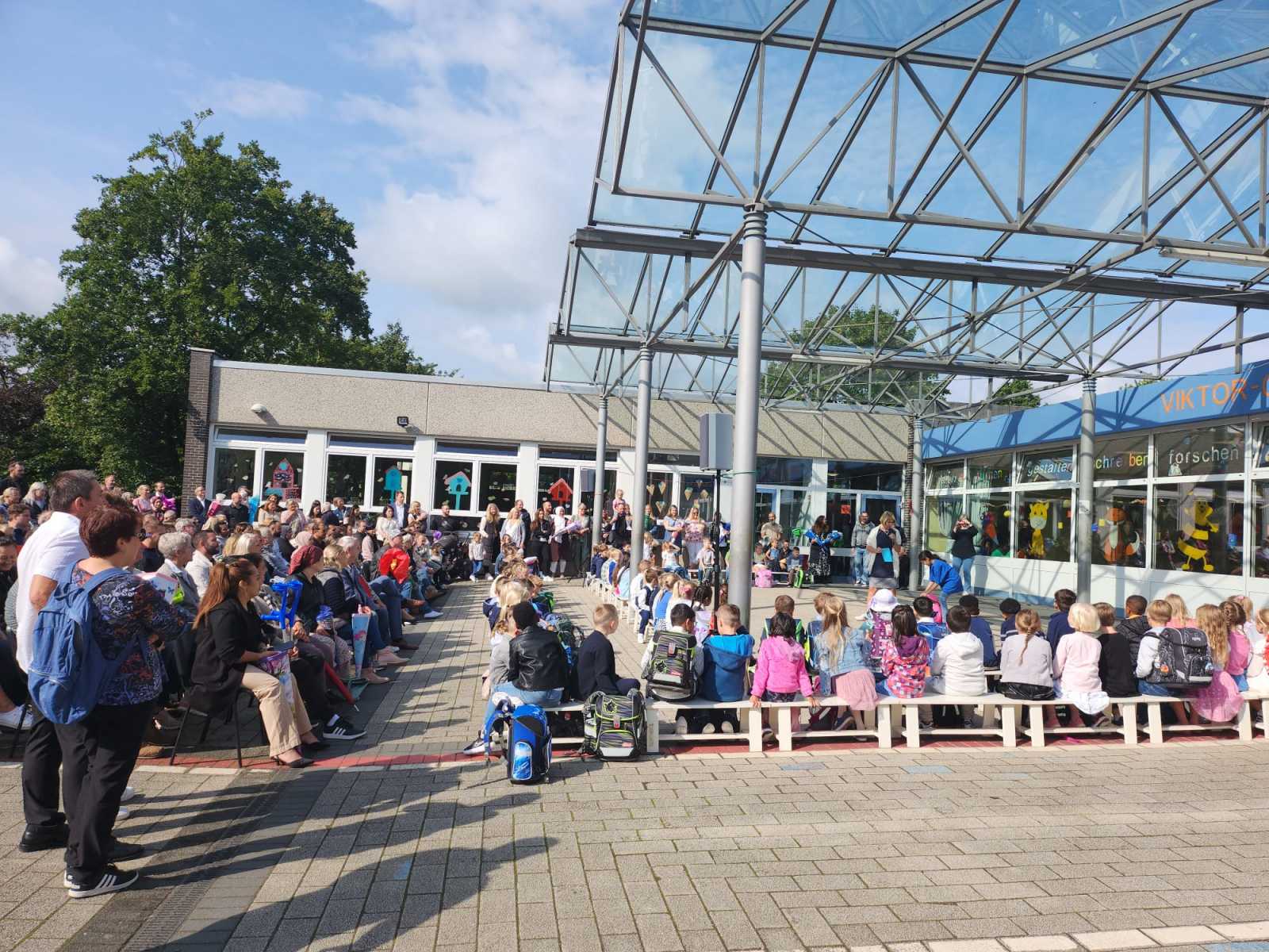 Endlich ist es soweit, heute konnten wir bei trockenem Wetter und Sonnenschein über 100 ErstklässlerInnen an der Viktor-Schule begrüßen.