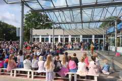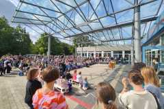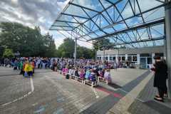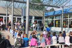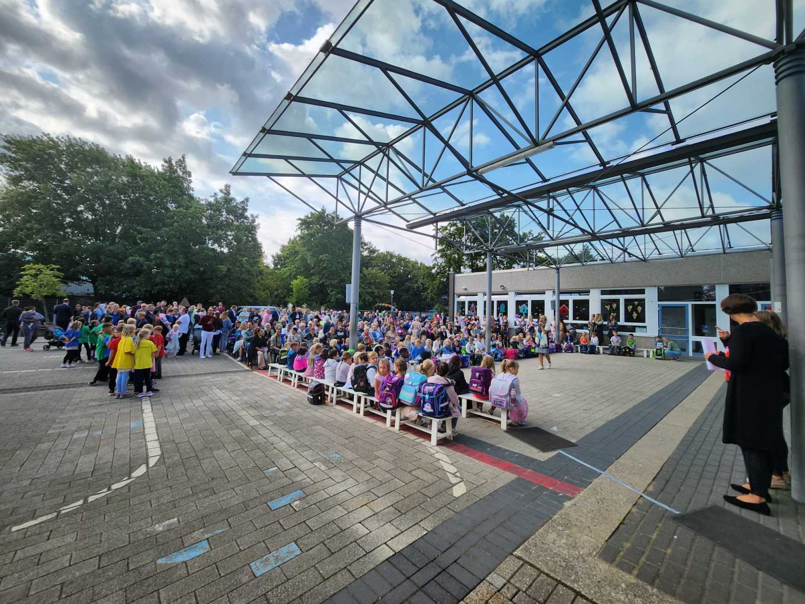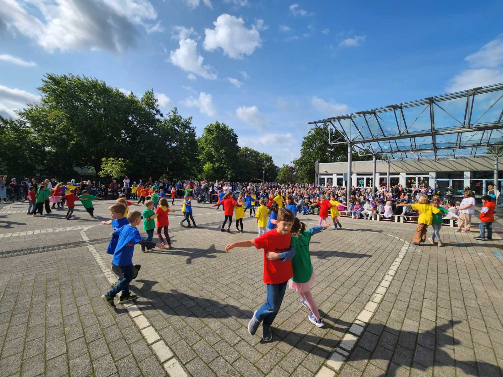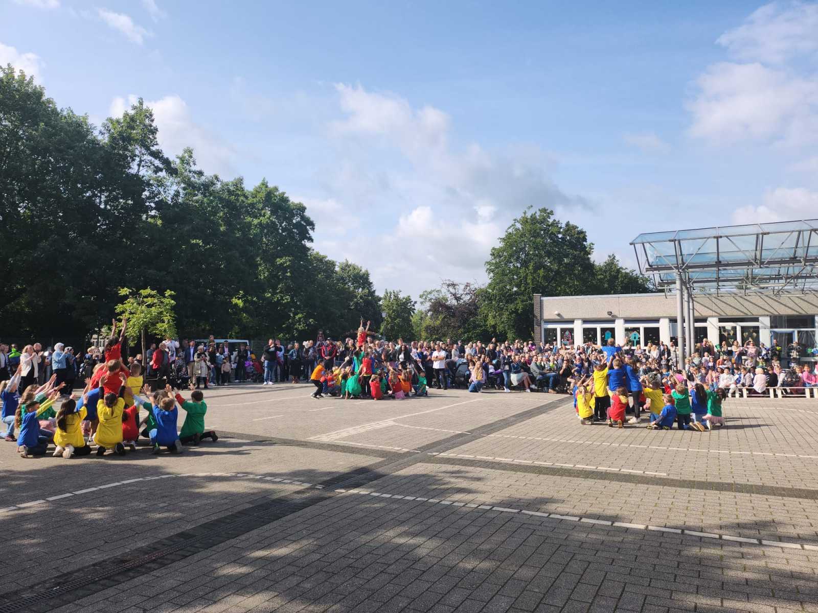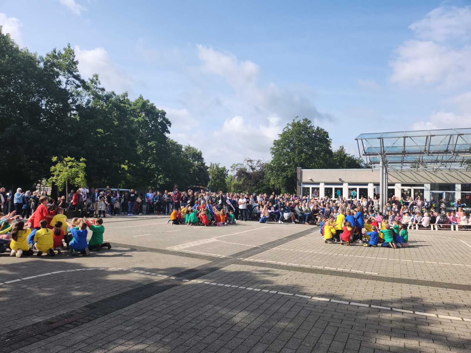 Nach Gottesdiensten im Xantener Dom und der Wallfahrtskirche St. Mariä Himmelfahrt empfing unsere stellvertretende Schulleiterin Frau Hilde Schmitz gemeinsam mit einigen Schulkindern die zukünftigen I-Dötzchen mit ihren Familien. Alle konnten ein tolles Programm der Jekits-Truppe unter Leitung von Frau Piscantor bestaunen.