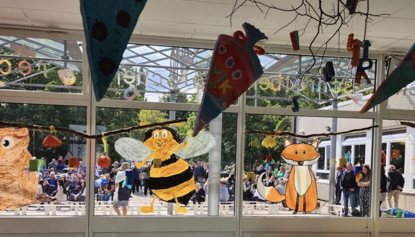 Während der Förderverein unter Mithilfe von Eltern für das leibliche Wohl aller Anwesenden sorgte, erlebten die Kinder ihre erste Unterrichtsstunde. Abschließend trafen sich Eulen-, Bienen-, Fuchs-, Giraffen- und Koalaklasse zum Fototermin.