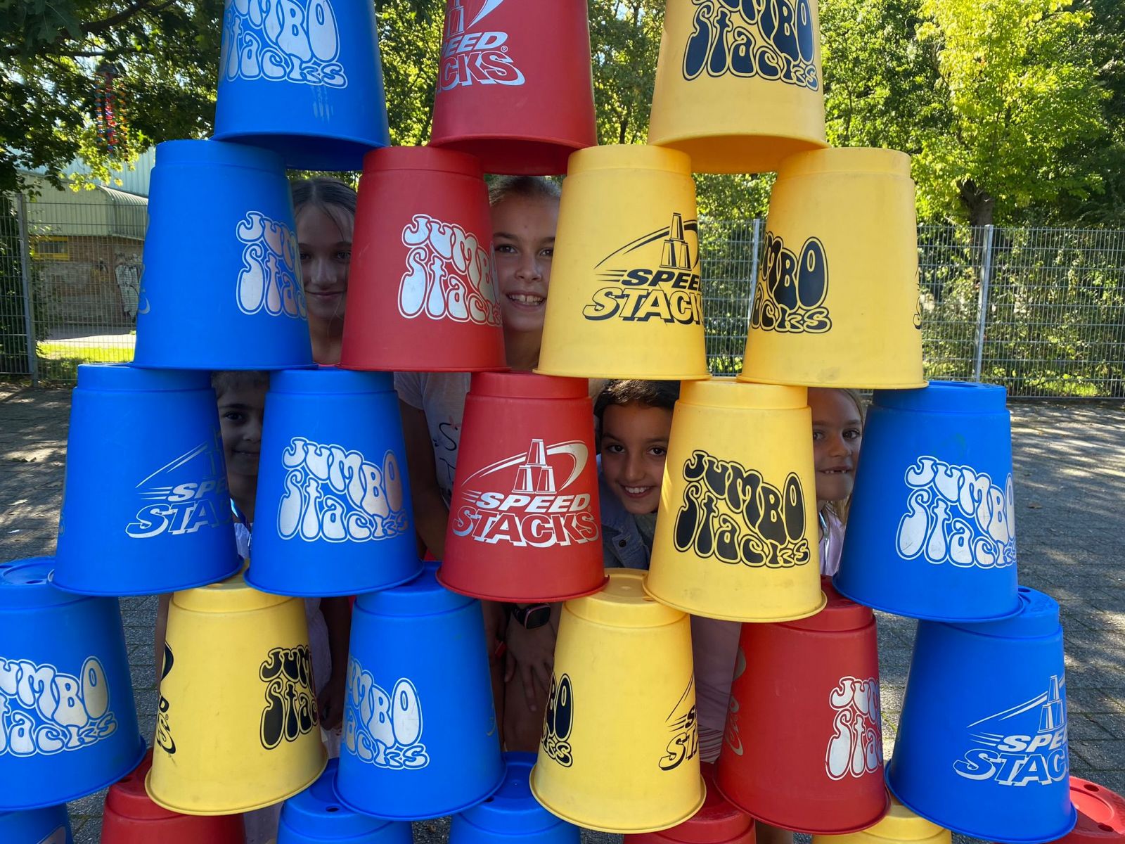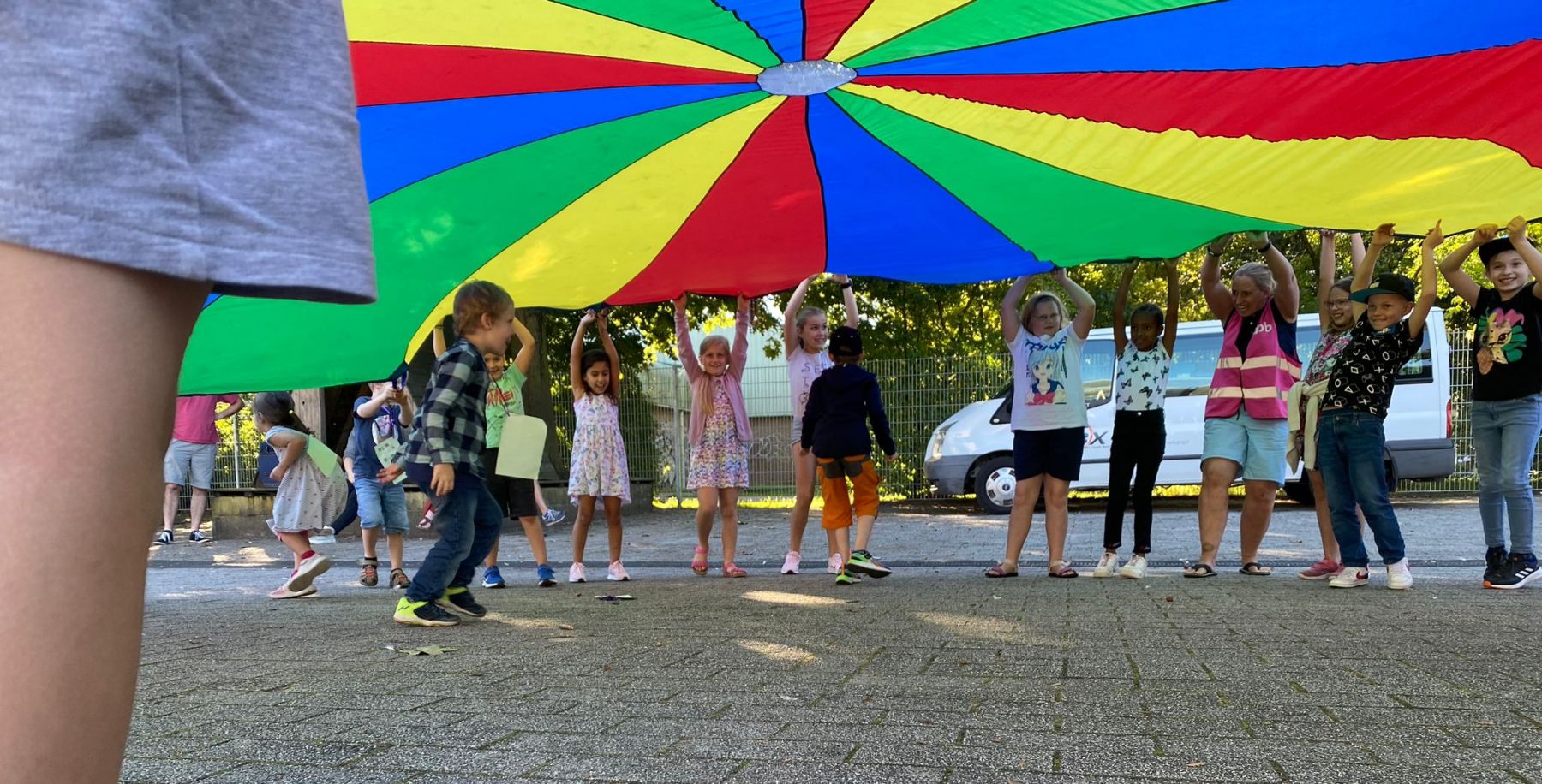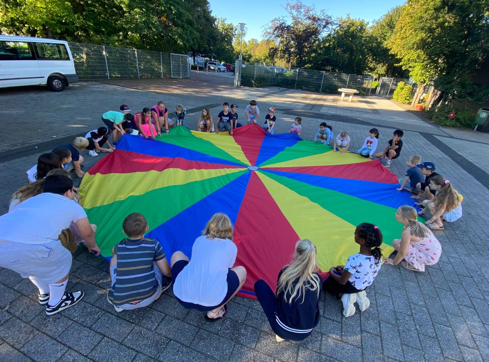 In der Woche vom 4. bis zum 7. September 2023 waren die Vorschulkinder der umliegenden Kitas bei uns an der Schule in Xanten und Marienbaum zu Besuch. Begleitet von den Kindern der dritten Schuljahre konnten sie an verschiedenen Spielstationen einen ersten intensiven Kontakt mit Schule erleben. Sie warfen, angelten und spielten Luftballon-Tennis. Den Abschluss machte das Schwungtuch, das allen Spaß brachte.