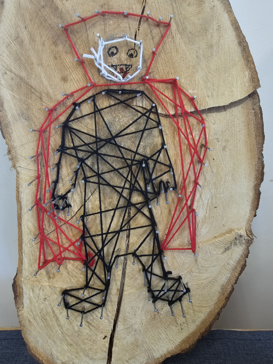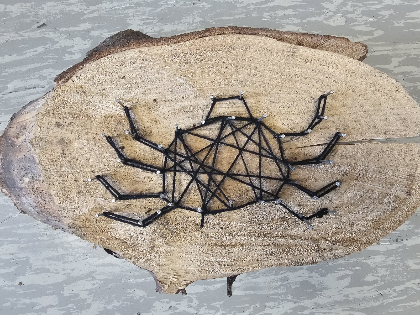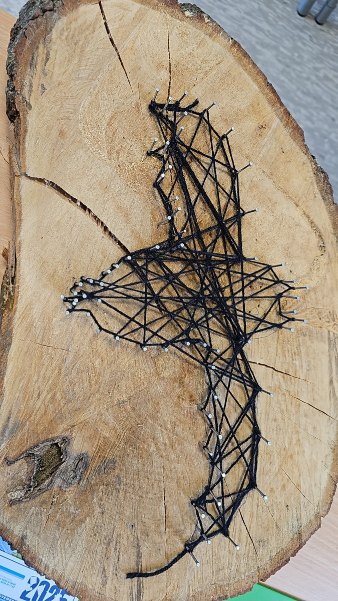Mit viel Freude und Begeisterung haben sie gruselige Motive wie Spinnen, Geister und Fledermäuse auf Holzplatten umgesetzt. Dabei wurden Nägel vorsichtig in die vorgezeichneten Konturen gehämmert und anschließend mit bunten Fäden bespannt.