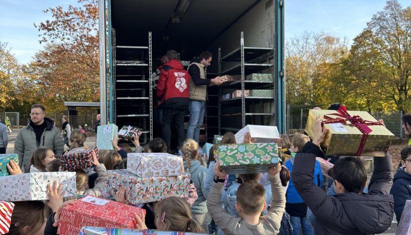 Auch in diesem Jahr haben unsere Schülerinnen und Schüler wieder ein großes Zeichen der Solidarität und Nächstenliebe gesetzt: Am Donnerstag, den 6. November 2025, machte der große Lastwagen des Weihnachtspäckchen-Konvois Halt an der Viktor-Schule, um die zahlreichen liebevoll gepackten Geschenke abzuholen.