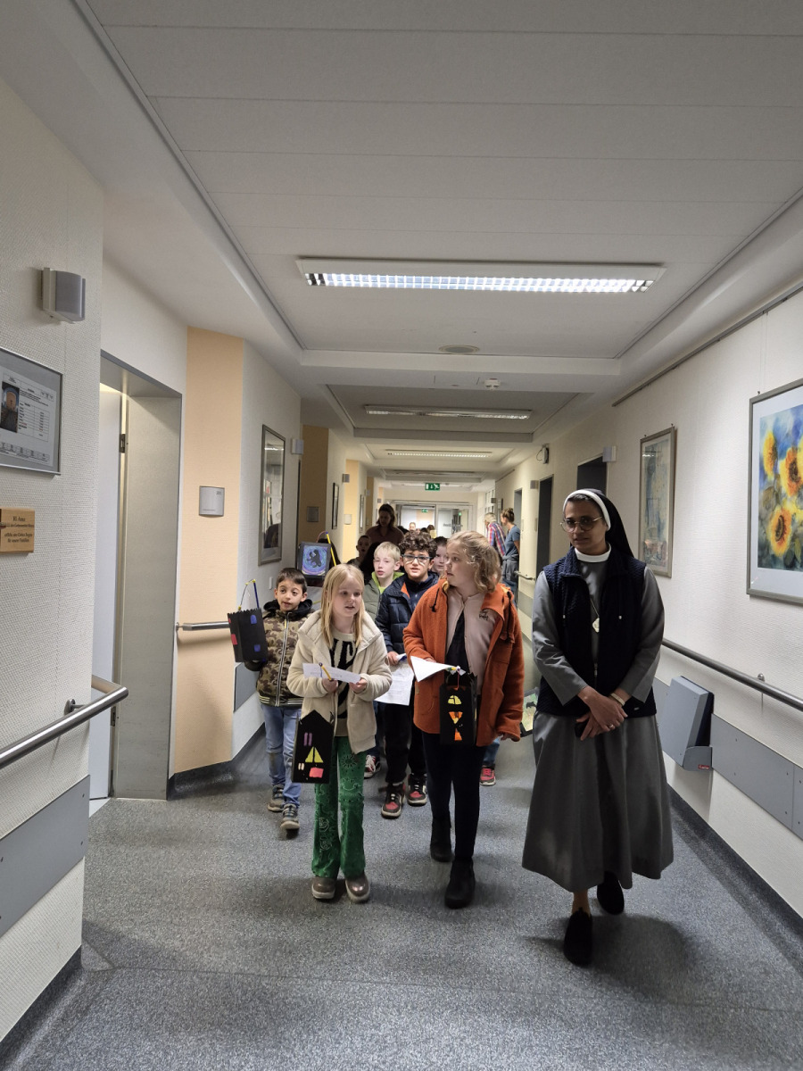 Ein weiteres Highlight folgte am Tag nach dem Zug: Die Liedzeile „Tragt zu den Kranken ein Licht“ wurde wahr. Einige Kinder der 4. Klassen zogen mit ihren Laternen durchs Xantener Krankenhaus und sangen für die Patientinnen und Patienten. Die Besuche sorgten für viele bewegende Momente und viel Freude bei den Zuhörenden.