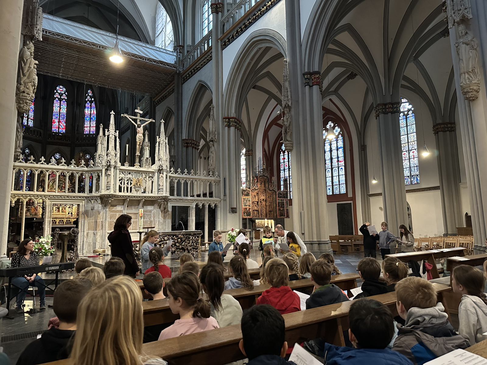 Bereits am Vormittag wurden in den Klassen die großen Weckmänner geteilt und der ökumenische Martinsgottesdienst im Dom gefeiert. Besonders fleißig waren die 3. Schuljahre: Sie starteten etwas früher, um vor dem Zug noch im evangelischen Seniorenheim zu singen — ein schönes Beispiel gelebter Gemeinschaft.