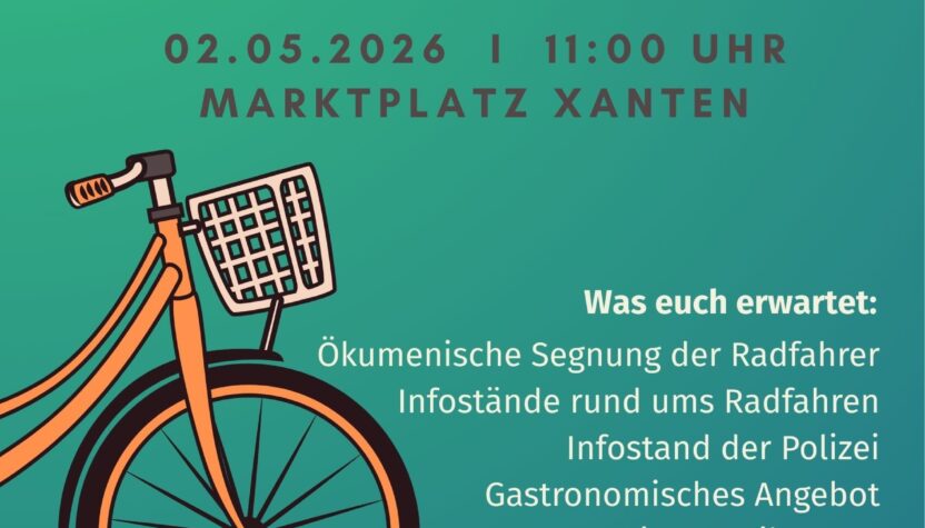 Am Samstag, den 02.05.26, findet auf dem Xantener Marktplatz die Radfahrersegnung statt.